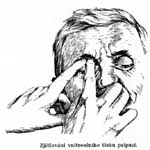 • Štěrbinová lampa - zelený filtr, fixační světlo, poloha štěrbiny je rovnoběžná s osou pozorování, mydriasa